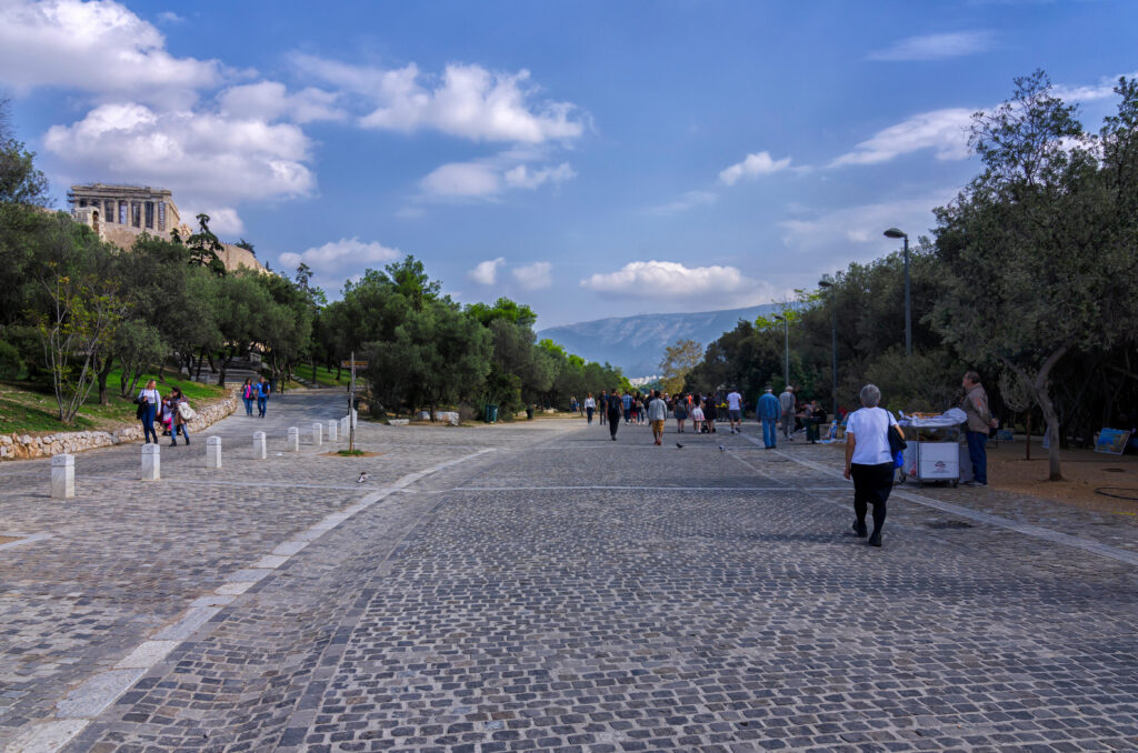 Dionysiou Areopagitou area consists of the paved street which runs alongside the Acropolis.